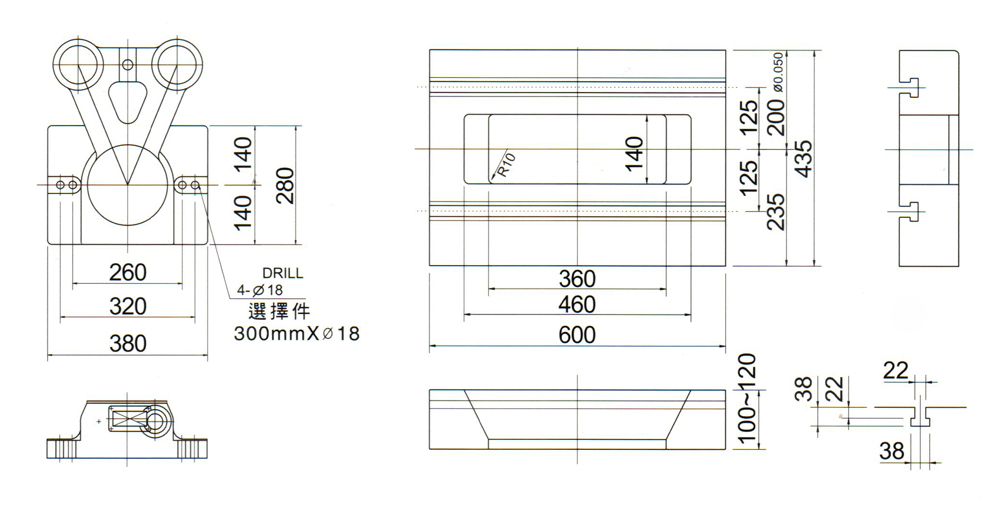 Slide hole / 沖頭鎖緊上模位置 MM   260mm   320mm  ø18(300mm o 18)
